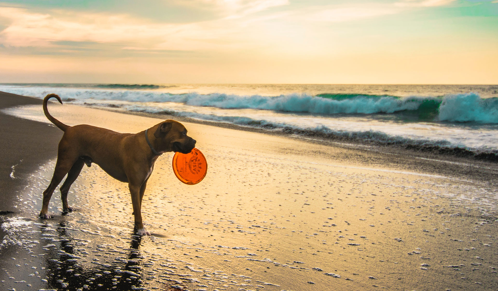 Hilton Vet Hospital – Boxer with Frisbee at the Beach